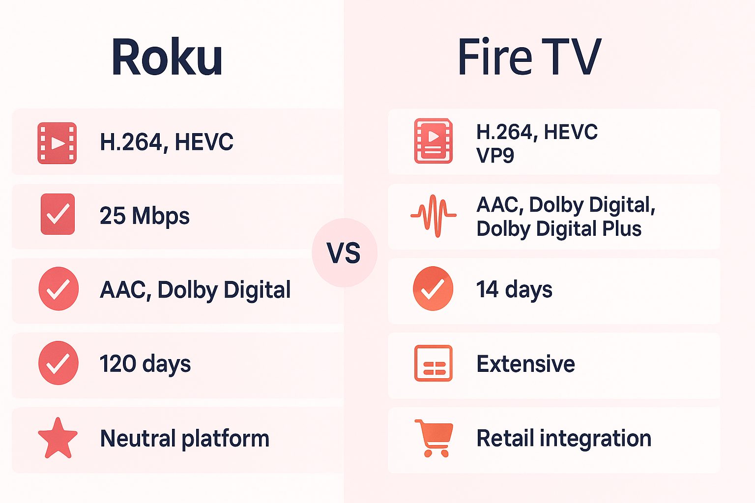 Every major FAST platform requires H.264/AVC as the baseline video codec (https://iabtechlab.com/standards/video/). This isn’t negotiable. H.264 has achieved near-universal compatibility across devices manufactured since 2010, making it the safe harbour for content delivery. The codec delivers excellent compression efficiency, reducing file sizes by up to 50% compared to older MPEG-2 standards whilst maintaining visual quality that satisfies viewer expectations.